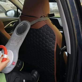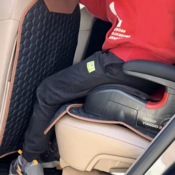 This car kick mat is a mast-have accessory for families who travel by car with kids in the back seat.
