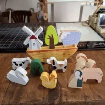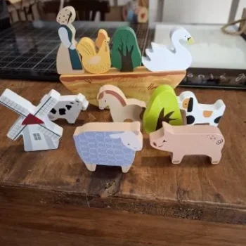 This beautifully crafted educational toy features a whimsical seesaw board along with a variety of charming wooden shapes, including farm animals, stars, moons, and clouds. Designed for children aged 3-6 years, this toy set combines play with essential developmental skills, making it an ideal gift for birthdays or special occasions.